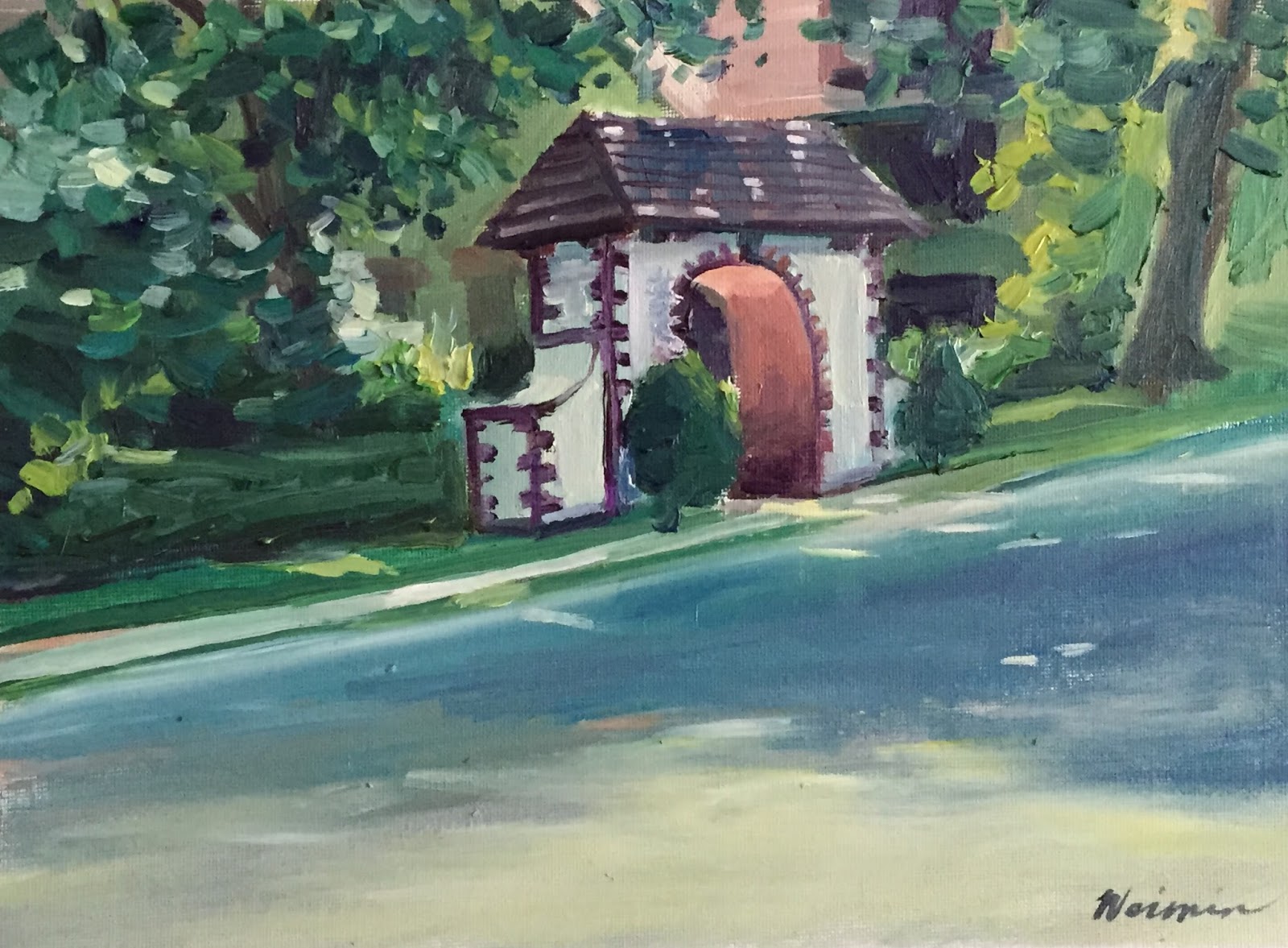 The house is located at the intersection of Kessel and Whitson, right off Union Turnpike. There was nothing special about it. The reason I painted it this morning was also because the way it looked against the sun the other day when I was biking. I noticed it looked really dark and thought it could be a good subject for practicing control over values. I don't think I achieved the perfect effect of the lighting this morning. Well, a good way of study, though.